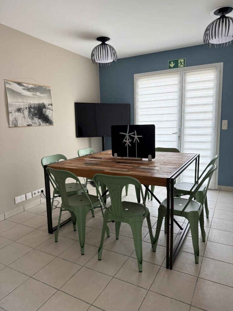 - Une salle de réunion lumineuse pouvant accueillir jusqu’à 8 personnes